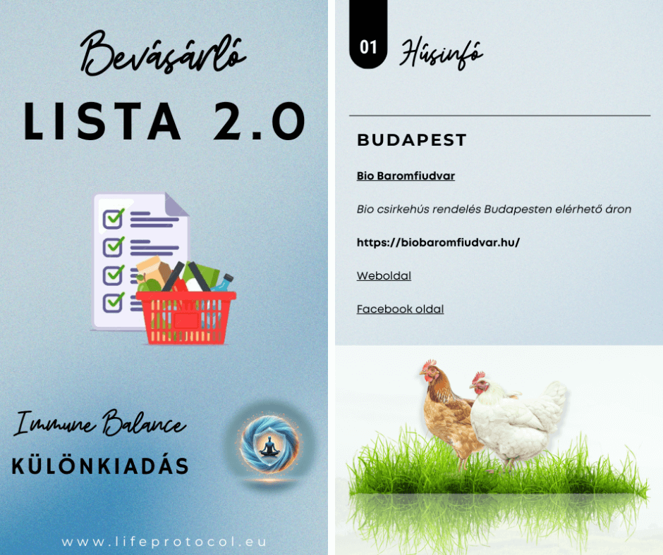 Jegyed mellé ajándékba kapod a Life Protocol 62 oldalas bevásárló listáját, amelybe minden megbízható élelmi forrást és étrend kiegészítőt összegyűjtöttem: